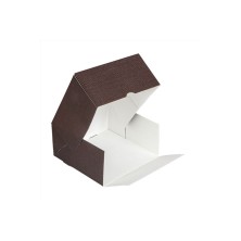 Cajas Pastelería Sin Ventana Chocolate 24 x 24 x 12 cm. Cajas de pastelería fabricadas en cartón nano - micro ondulado con 250 g/m². Apertura frontal que permite introducir y retirar los postres con facilidad. Muy resistentes y ligeras. Biodegradables y reciclable. Aguanta temperaturas de -18ºC hasta +70ºC. Dimensiones: 24 x 24 x 12 cm.