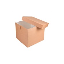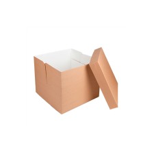 Cajas Pastelería Sin Ventana Kraft 35,6 x 35,6 x 30,5 cm. Cajas de pastelería fabricadas en cartón nano - micro ondulado con 250 g/m². Muy resistentes y ligeras. Ideales para postres altos. Biodegradables y reciclable. Aguanta temperaturas de -18ºC hasta +70ºC. Dimensiones: 35,6 x 35,6 x 30,5 cm.