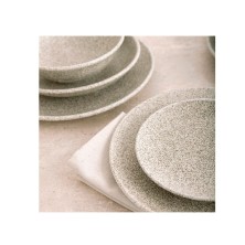 Plato Llano Element Cream Hydrozero 25 cm. Plato llano fabricado en porcelana vitrificada con acabado profesional de alta resistencia a rayaduras y bordes reforzados. Decorado completo. Es apilable. Apto para microondas y lavavajillas. Dimensiones: 25 cm.